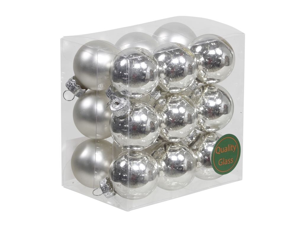 Sada 18 ks skleněných baněk stříbrných. V sadě jsou namíchané matné a lesklé baňky.Materiál: skloRozměr:průměr 3 cm prečítať celé