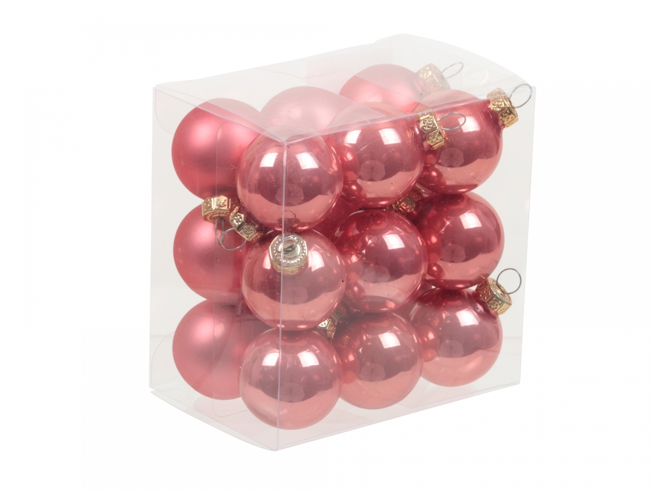 Sada 18 ks skleněných baněk v barvě camelia. V sadě jsou namíchané lesklé a matné baňky.Materiál: skloRozměr:průměr 3 cm prečítať celé