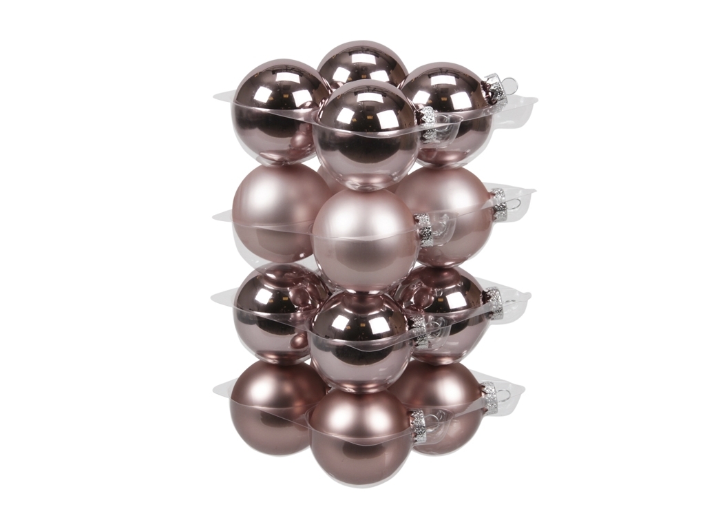 Sada 16 ks skleněných baněk růžové-kouřové barvy. V sadě jsou namíchané matné a lesklé baňky.Materiál: skloRozměr:průměr 5,7 cm prečítať celé