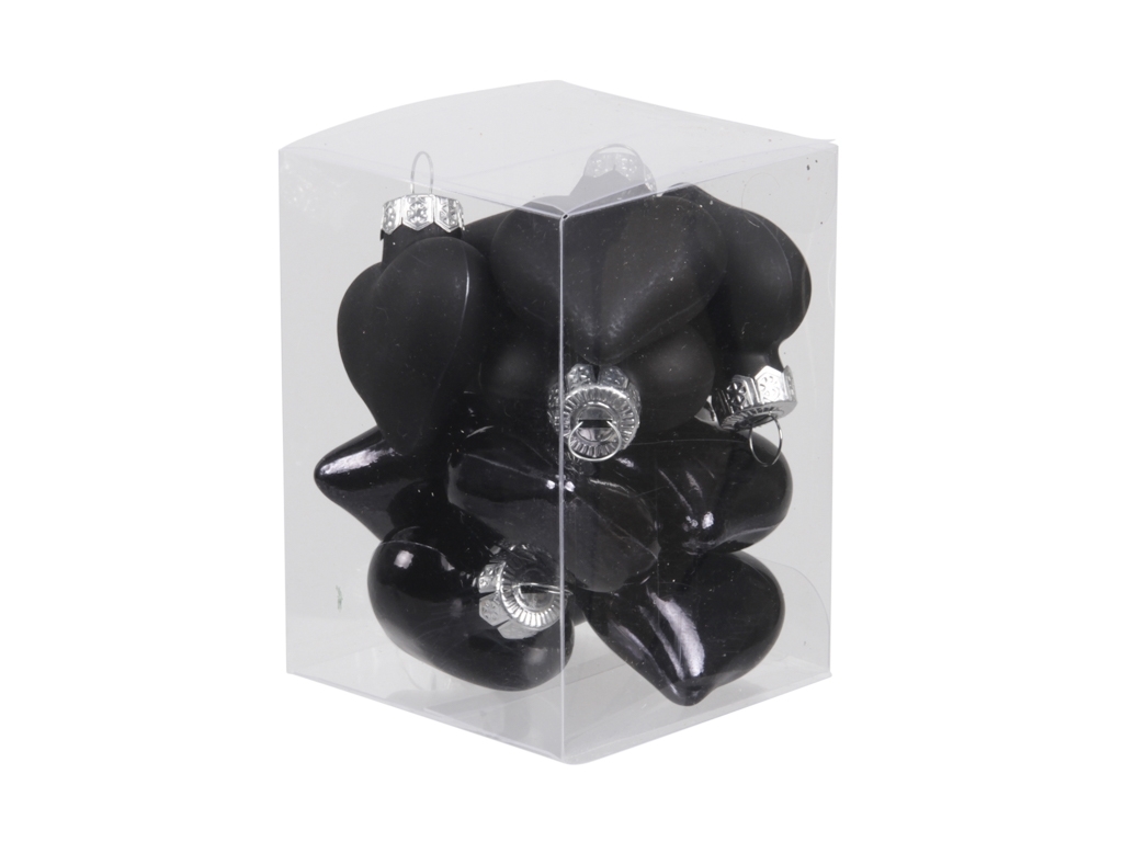 Sada 12 ks skleněných baněk - srdíček v barvě černé lesklé a matné.Materiál: skloRozměr:4 cm prečítať celé