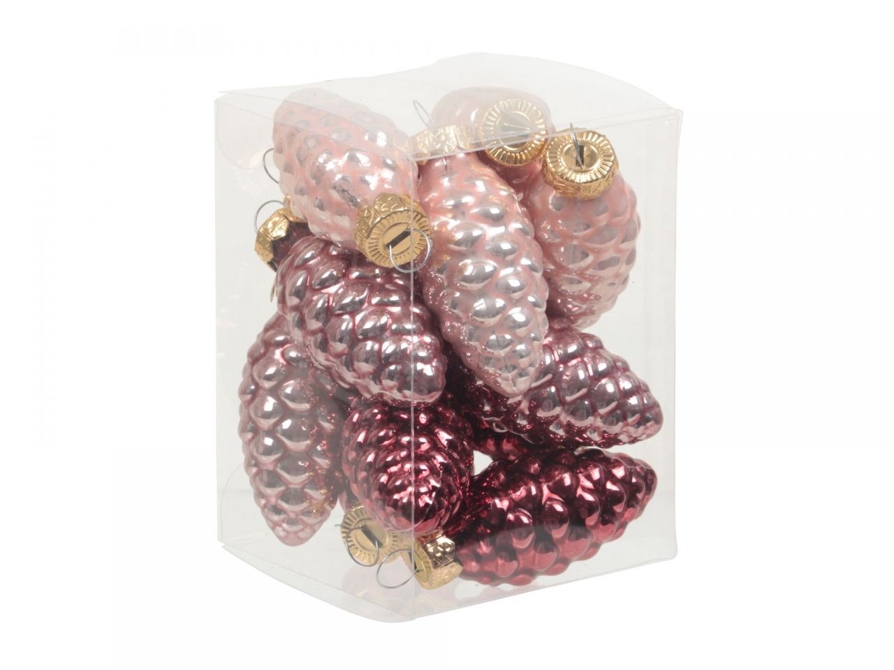 Skleněné baňky - šišky 6 cm, divoké květy, sada 12 ks