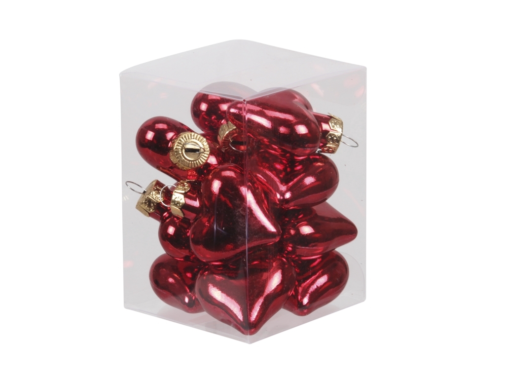Skleněné baňky - srdíčka 4 cm, červené lesklé, sada 12 ks