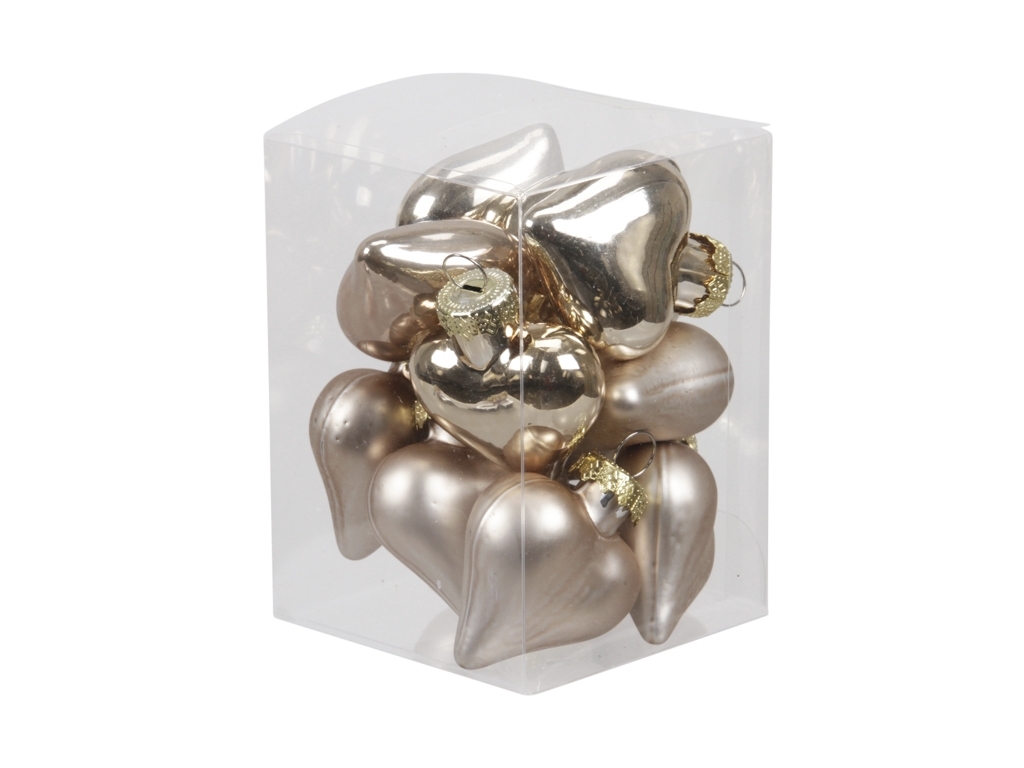 Sada 12 ks skleněných baněk - srdíček, autumn blonde. V sadě jsou namíchané matné a lesklé baňky.Materiál: skloRozměr:4 cm prečítať celé