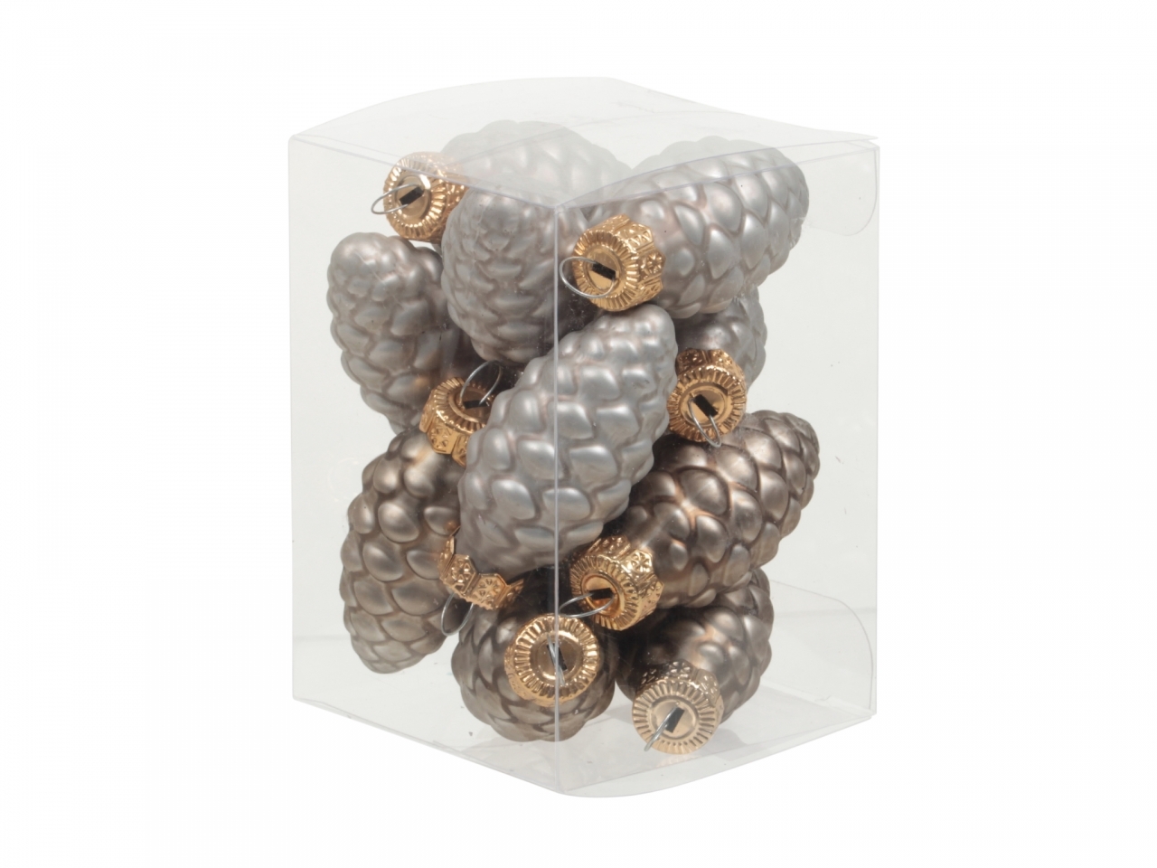 Skleněné baňky - šišky 6 cm, eukalyptus, sada 12 ks
