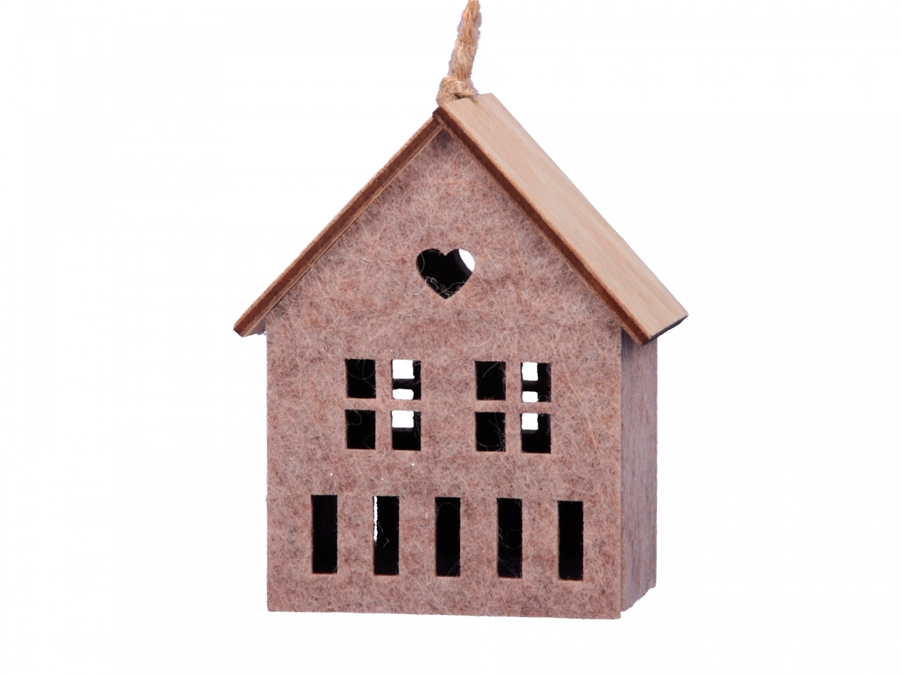 Plstěný domeček na zavěšení 8,5x7x5,5 cm, hnědý