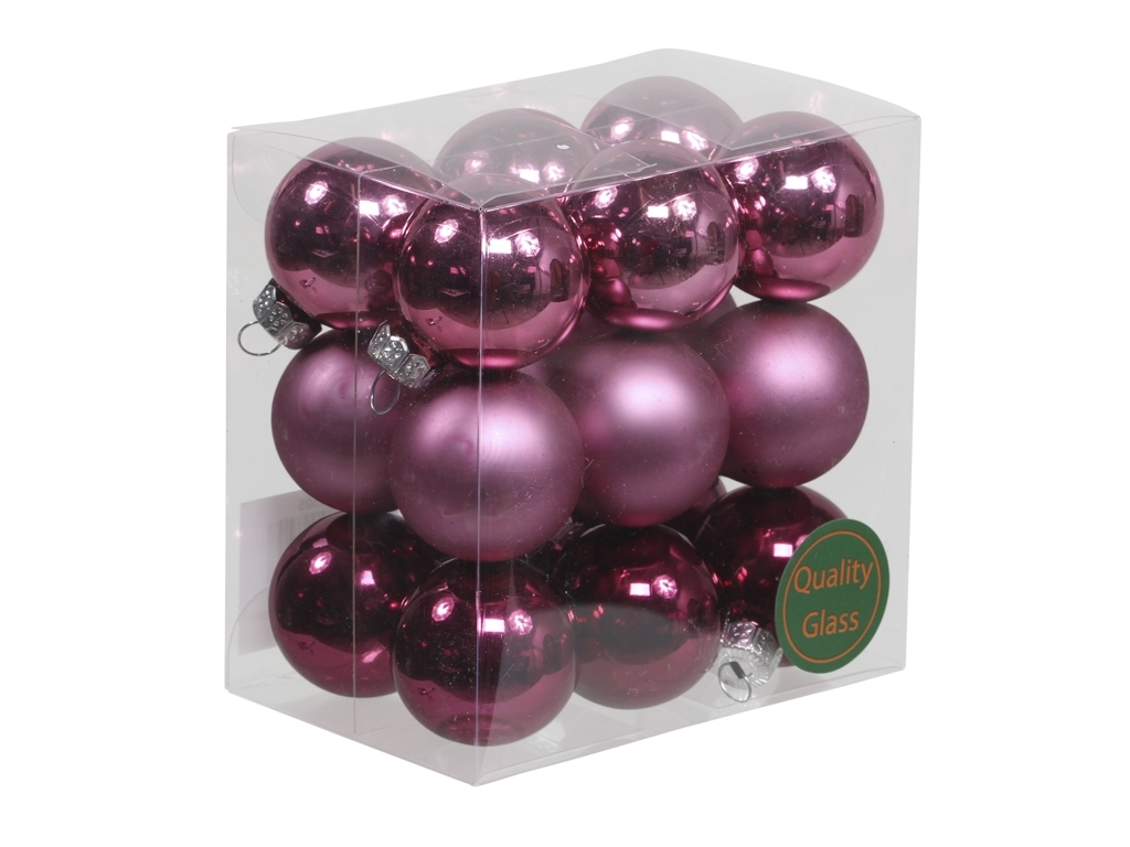Sada 18 ks skleněných baněk v barvě vřesu. V sadě jsou namíchané lesklé a matné baňky.Materiál: skloRozměr:průměr 3 cm prečítať celé