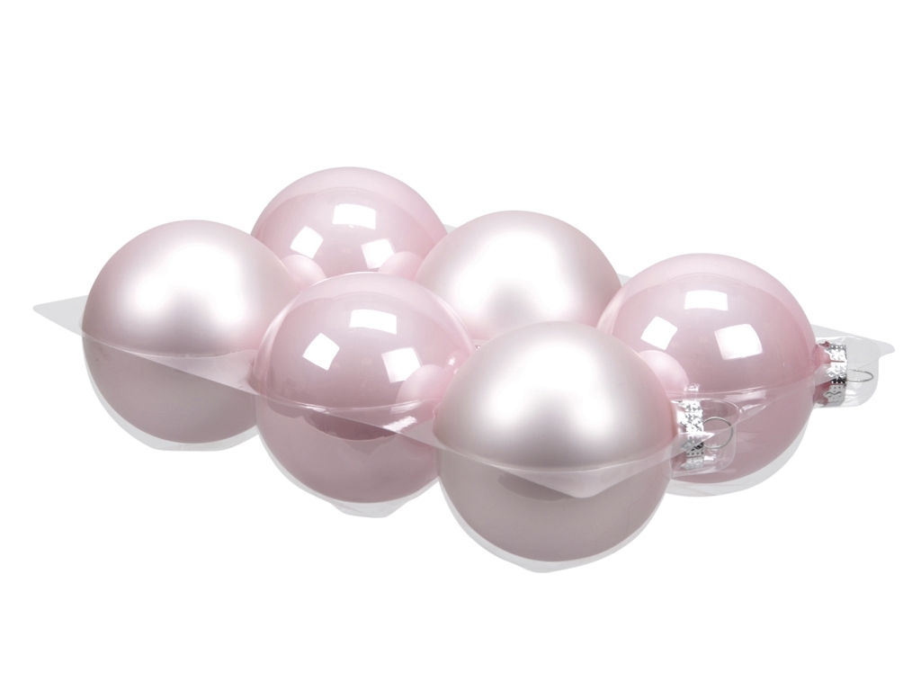 Skleněné baňky powder pink 8 cm, sada 6 ks