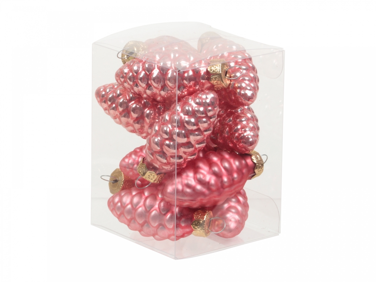 Skleněné baňky - šišky, camelia, 6 cm, sada 12 ks