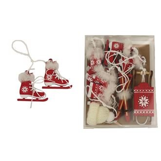 Sada dekorací k zavěšení.Sada obsahuje 6 dekorací.Rozměry : 2,5 - 6 x 0,5 cm, výška 2 - 6 cm.Barva : kombinace červená s bílou.Materiál na bázi dřeva. prečítať celé