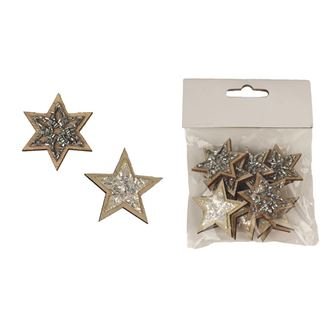 Sada dekoračních hvězdiček.Sada obsahuje 12 hvězdiček.Rozměry : dia 4 cm, tloušťka 0,3 cm.Barva : kombinace přírodní, bílá, stříbrná.Materiál na bázi dřeva. prečítať celé