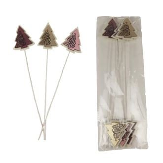 Sada dekoračních zápichů.Sada obsahuje 6 zápichů.Rozměry : 5 x 0,5 cm, výška 5,5 cm, celková délka zápichů 29 cm.Barva : kombinace bílá, hnědá, fialová, růžová.Materiál na bázi dřeva, flís. prečítať celé