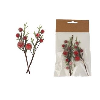 Dekorační větvička.Balení obsahuje 3 větvičky.Rozměry : 3 x 2 cm, délka 11 cm.Barva : kombinace hnědá, červená, zelená.Materiál : plast. prečítať celé