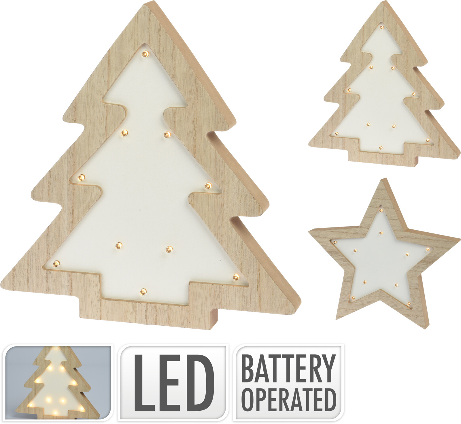 Vánoční svítící LED dekorace v nabídce ve dvou motivech - stromeček a hvězda. Svůj výběr uveďte do poznámky.Baterie jsou součástí.Materiál - dřevo, plast. prečítať celé
