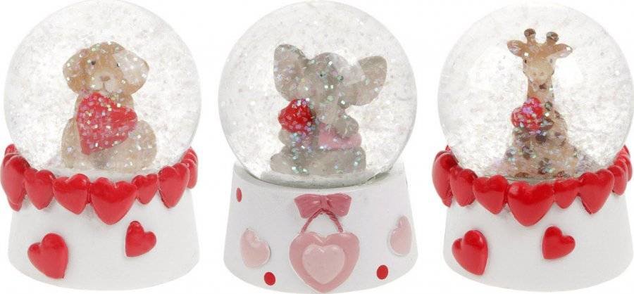 Sněžítko se zvířátkem a srdíčky, polyresinová dekorace, mix pes, slon a žifara, cena za 1 kus ZP2243 Art