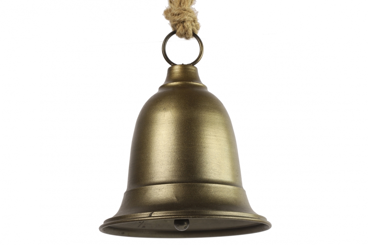 Kovový zvon na jutovém provazu.Materiál: kovRozměry:40x15x15 cm prečítať celé
