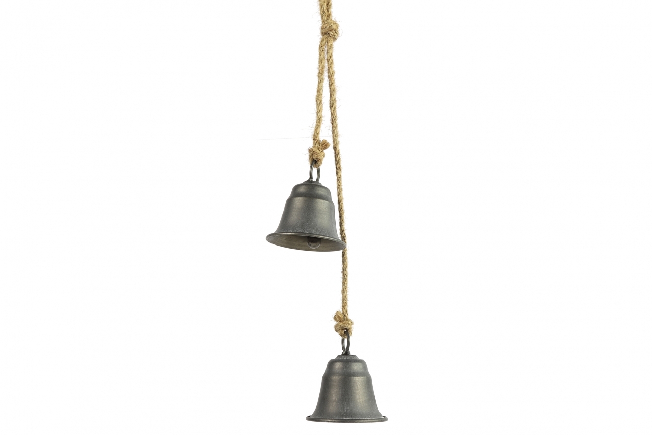 Sada 2 ks kovových zvonků na jutovém provaze.Materiál: kovRozměry:délka celkem 51 cmzvonek 8x7,5 cm prečítať celé
