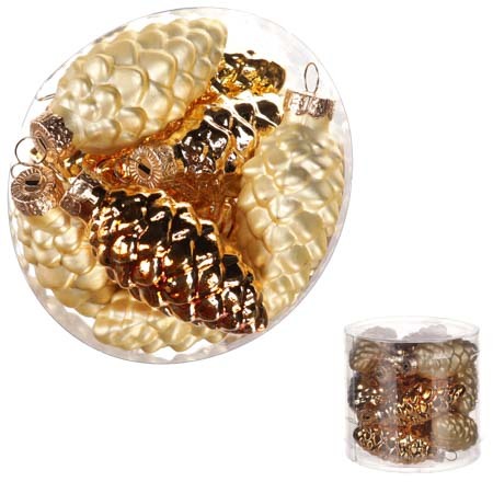 Ozdoby skleněné-tvar šišky, zlaté, pr. 5,5 cm, cena za 1 balení (13 ks)