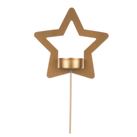 Svícen kovový ve tvaru hvězdy - zápich, na čajovou svíčku, matná zlatá.