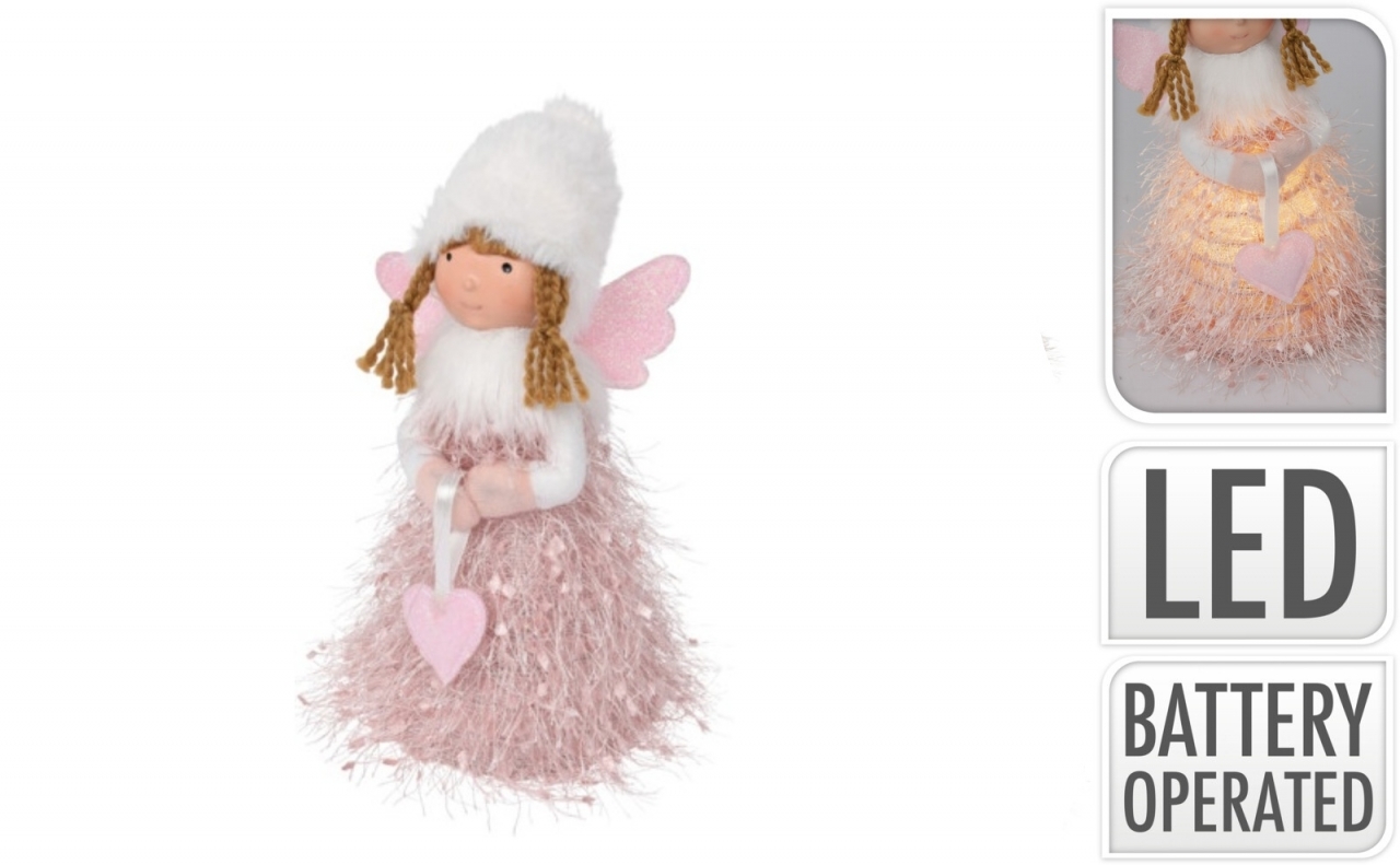 Dekorativní svítící andílek na kovové pružině. 1x LED dioda. Napájení 2x LR44 bateriemi, součástí výrobku.Materiál: kov, plast, potyesterRozměry:24x10,5x10,5 cm prečítať celé