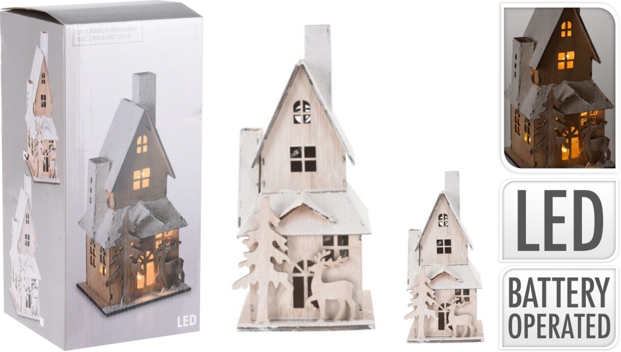 Dřevěný LED domeček bílý 20,5x9x9 cm