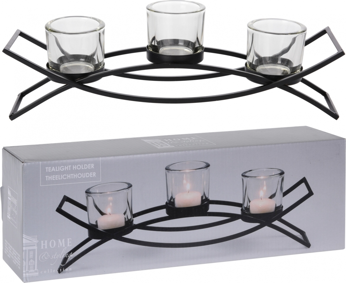 Kovový svícen Harry čirý, 3 kalíšky na svíčku