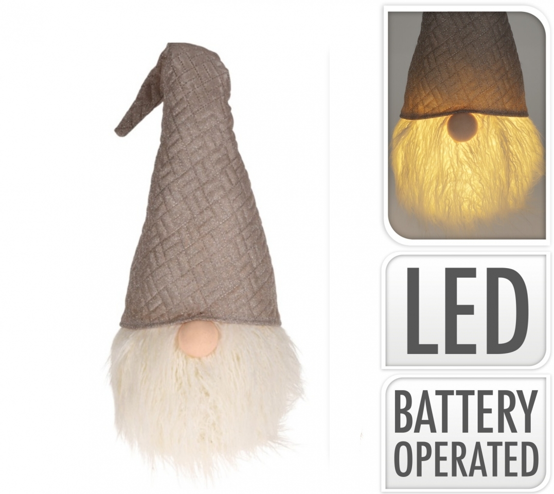 Látkový skřítek s dlouhým vousem, roztomilým nosánkem a velkou glitrovanou skřítkovskou čepicí. Skřítek svítí - 1x LED dioda, teplá bílá.2x AAA baterie nejsou součástí výrobku.Materiál: textil, plastový skeletRozměry:výška 70 cmšířka 23 cmhloubka 23 cm prečítať celé