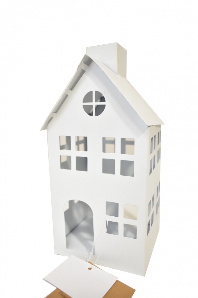 Kovový domeček na čajovou svíčku, bílý s patinou, 20,5x10x8 cm II. jakost