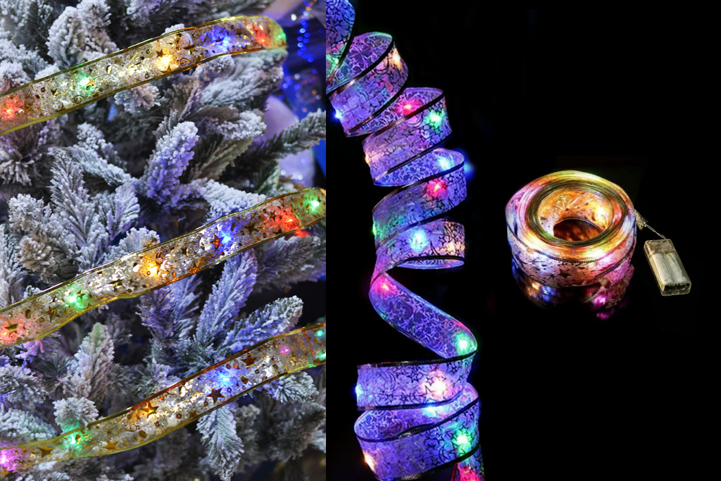 Vánoční dekorační stuha s LED osvětlením na baterie Led osvětlení na baterie. Pro vnitřní použití. Interiérová LED světla. Délka: 200cm Šířka: 5cm Napájeno 2xAA baterií (není součástí) prečítať celé