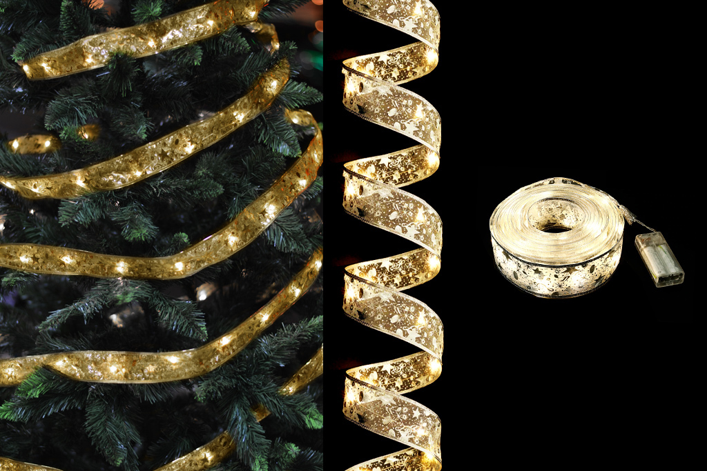 Vánoční stuha s LED světýlky 500cm 50LED - Zlatá stuha/teplá bílá