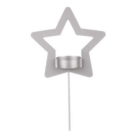 Svícen kovový ve tvaru hvězdy - zápich, na čajovou svíčku, matná stříbrná.