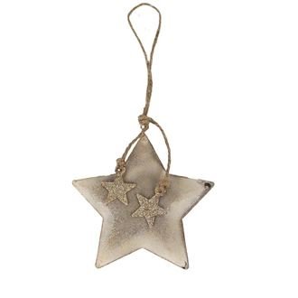 Dekorační hvězda k zavěšení.Rozměry : 9,8 x 9,5 cm, tloušťka 1,2 cm.Barva : hnědo zlatá.Materiál : kov. prečítať celé