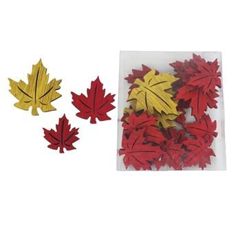 Sada dekoračních lístků.Sada obsahuje 18 lístků o třech velikostech.Rozměry : 3,5 - 5 x 0,5 cm, výška 3,5 - 5,5 cm.Barva : kombinace červená, žlutá.Materiál na bázi dřeva. prečítať celé