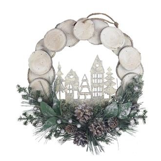 Krásný nadekorovaný vánoční věnec.Rozměry : 32 x 31 xm, tloušťka 0,7 cm.Barva : kombinace zelená, bílá, stříbrná.Materiál na bázi dřeva, kov, plast. prečítať celé