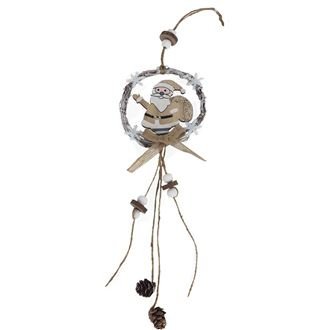 Dekorace k zavěšení.Rozměry : průměr 10,5 cm, tloušťka 0,7 cm, celková délka 45 cm.Barva : kombinace přírodní s hnědou.Materiál na bázi dřeva, přírodní, textil. prečítať celé