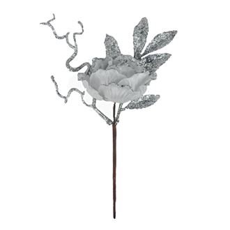 Dekorační květ.Rozměry : 17 x 8 cm, výška 22 cm.Barva : kombinace stříbrná s bílou.Materiál : textil. prečítať celé
