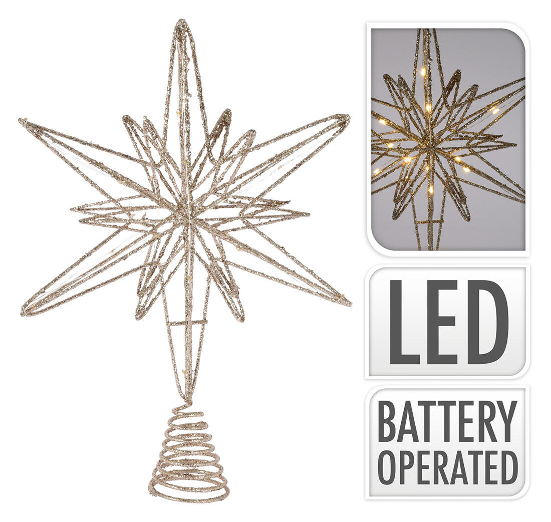 špička na stromek 20LED HVĚZDA 33cm CHAMPAGNE/ZLA