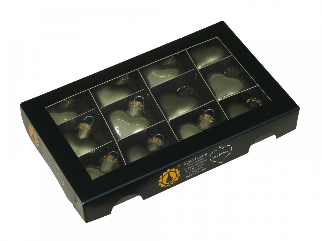 Sada 12 ks skleněných baněk - srdíček v barvě granite green. V sadě jsou lesklá a matná srdíčka. Materiál: skloRozměr:4 cm prečítať celé