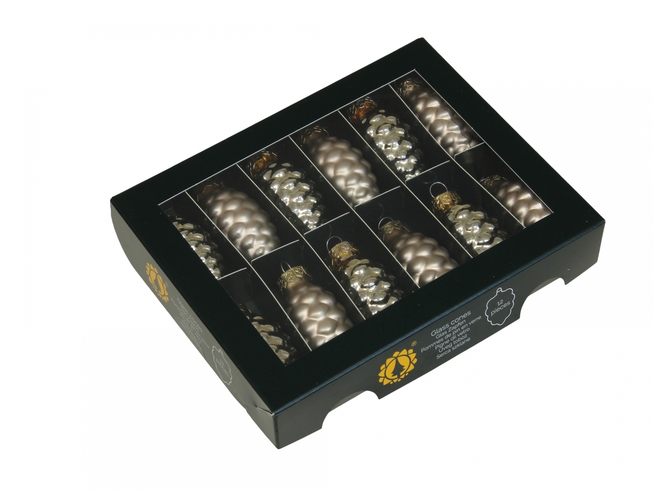 Skleněné baňky - šišky 6 cm podzim, sada 12 ks