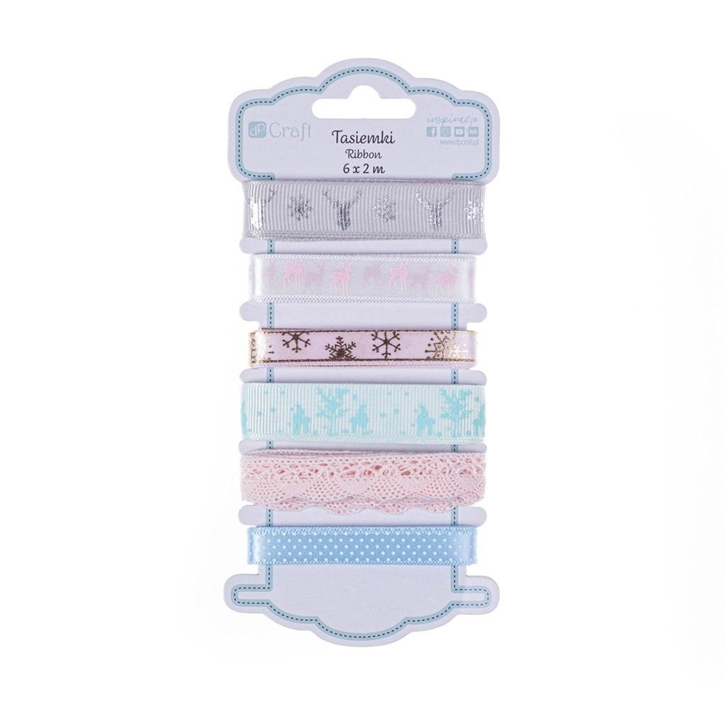 Zestaw satynowych i rypsowych tasiemek oraz koronek w pastelowych kolorach z motywami jelonków, drzewek i śniegu.Zaprojektowane jako element zimowej kolekcji Frosty Pastels, w której znajdziesz również kształty z papieru oraz naklejki z brokatem, pompony i kwiaty papierowe w dopasowanej...