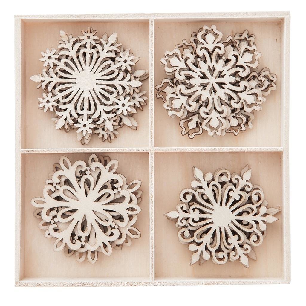 Kształty z drewna Śnieżynki to idealny dodatek do wszelkich świątecznych prac typu cardmaking, scrapbooking, home decor i wielu innych. Nadaj zimowy klimat swoim projektom! Drewniane kształty można dowolnie ozdabiać, malować, ozłacać (hot stamping), bądź pozostawić w naturalnej postaci.