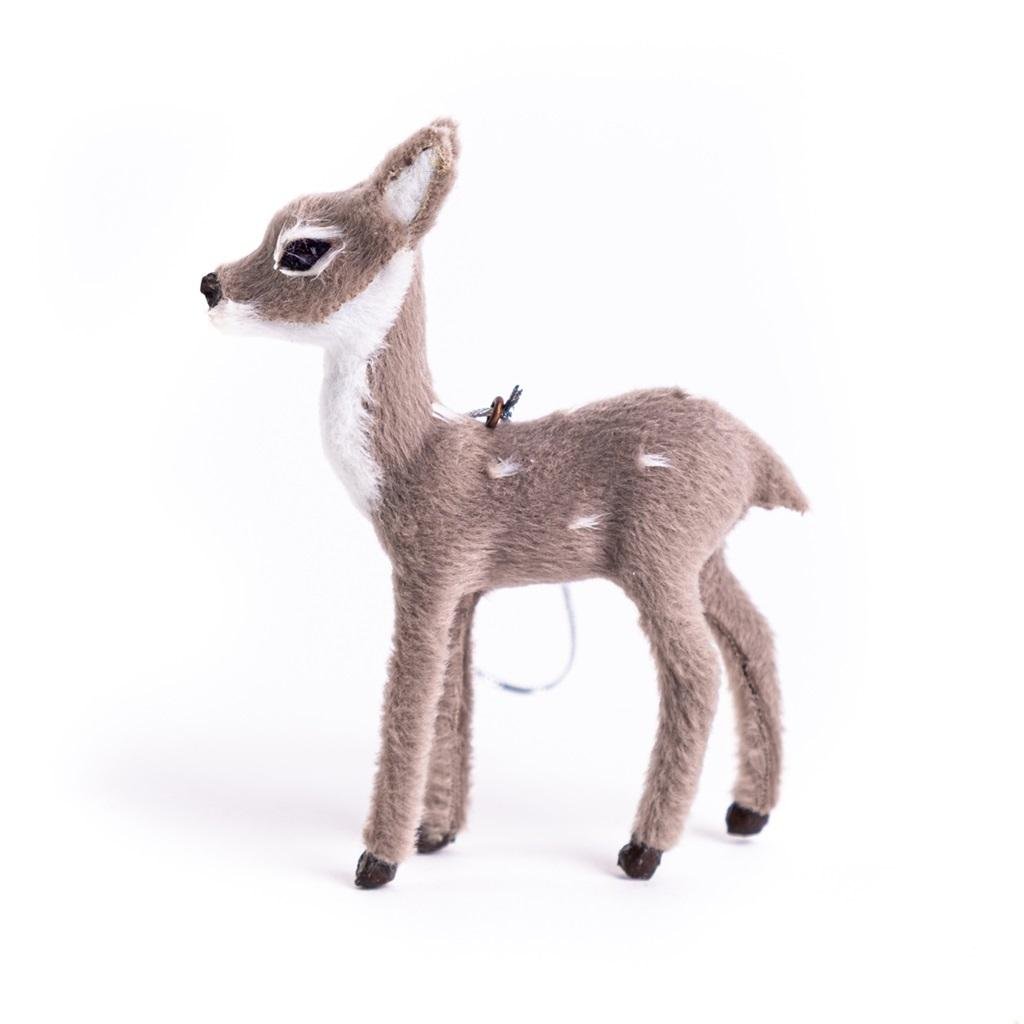 Szczegółowo wykończona zawieszka w formie szaro-białej sarenki pokryta miękkim, nakrapianym futerkiem.Wysokiej jakości figurka do powieszenia to wspaniały dodatek do projektów przestrzennych, stroików, wianków, ramek i kompozycji typu "mikroświat". Fantastyczne uzupełnienie dekoracji świątecznych...