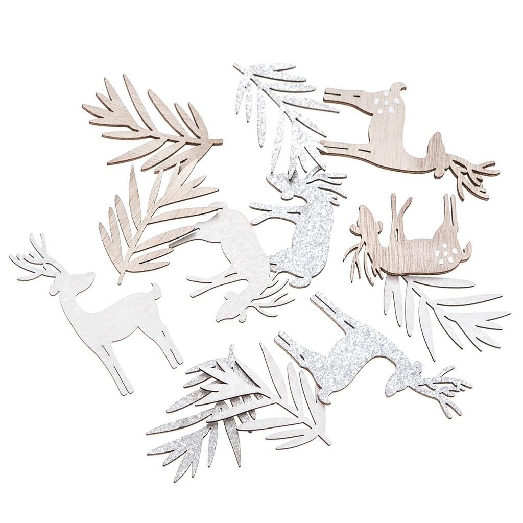 Kształty z drewna - renifery i liście 12szt