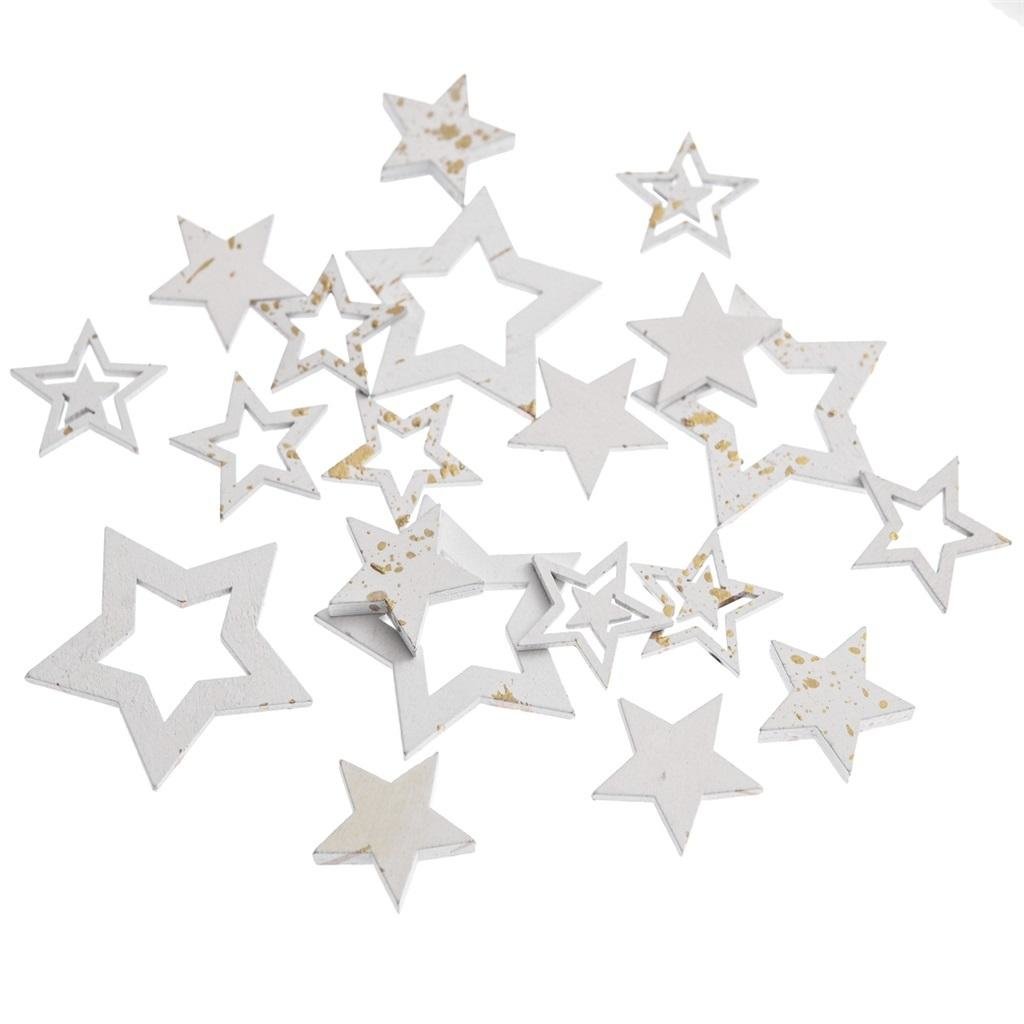 Drewniane gwiazdki w białym kolorze, posiadające ozdobne złocenia to ciekawy i elegancki dodatek do prac kreatywnych typu scrapbooking, cardmaking czy home decor. Największe gwiazdki mają wycięty środek, a część mniejszych, ażurowe wycięcie z mniejszą gwiazdką w środku.Sprawdzą się doskonale przy...