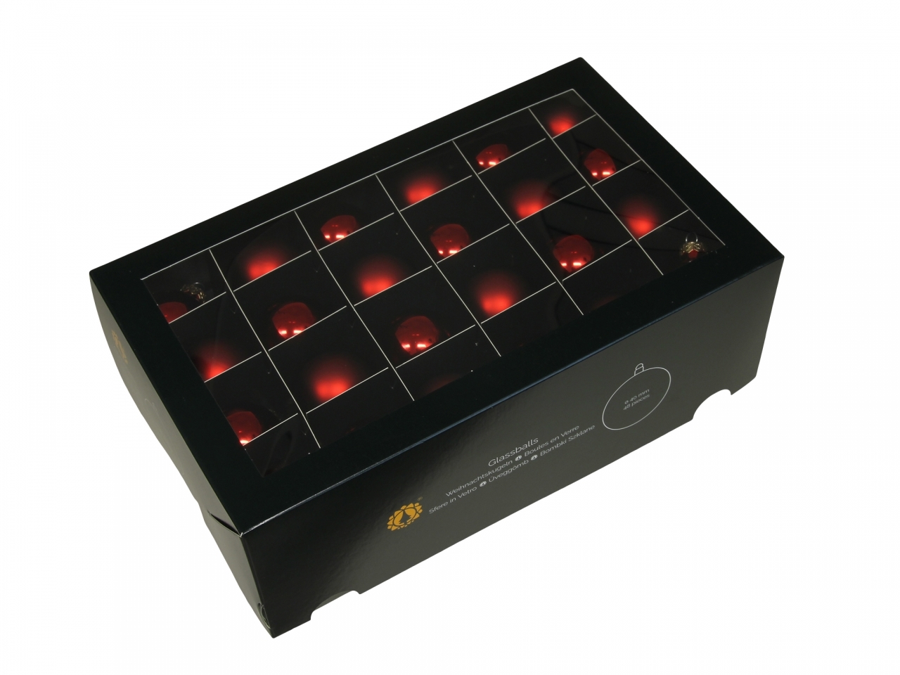 Sada 48 ks skleněných baněk v červené barvě. V sadě jsou namíchané lesklé a matné baňky.Materiál: skloRozměr:průměr 4 cm prečítať celé