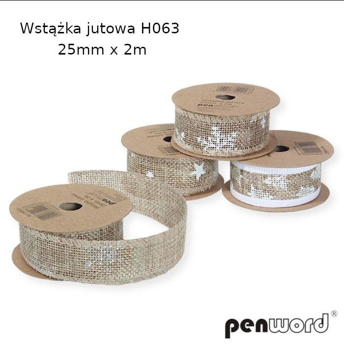 Wstążka ozdobna jutowa nadruk BN 25mmx2m (16szt)