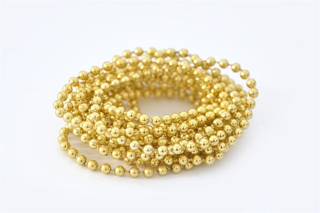 Łańcuch perełki - dekoracja choinkowa, długość ok. 270 cm. Średnica jednej perełki ok. 6 mm. Kolor złoty. prečítať celé