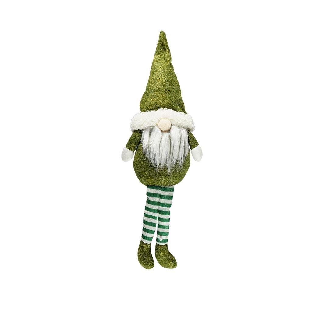 Filcowy skrzat dekoracyjny z długimi nogami. Urocza figurka w kolorze zielonym. Skrzat ma miękką, białą brodę, getry w paski i wysoką czapkę zakrywającą oczy. Brzeg czapki został obszyty białym pluszem. Długie nogi skrzata zwisają jeśli umieścimy go na brzegu mebla. Uniwersalna dekoracja świąteczna pasująca do każdego wnętrza. Doskonały pomysł na prezent. Wysokość skrzata: 45 cm.