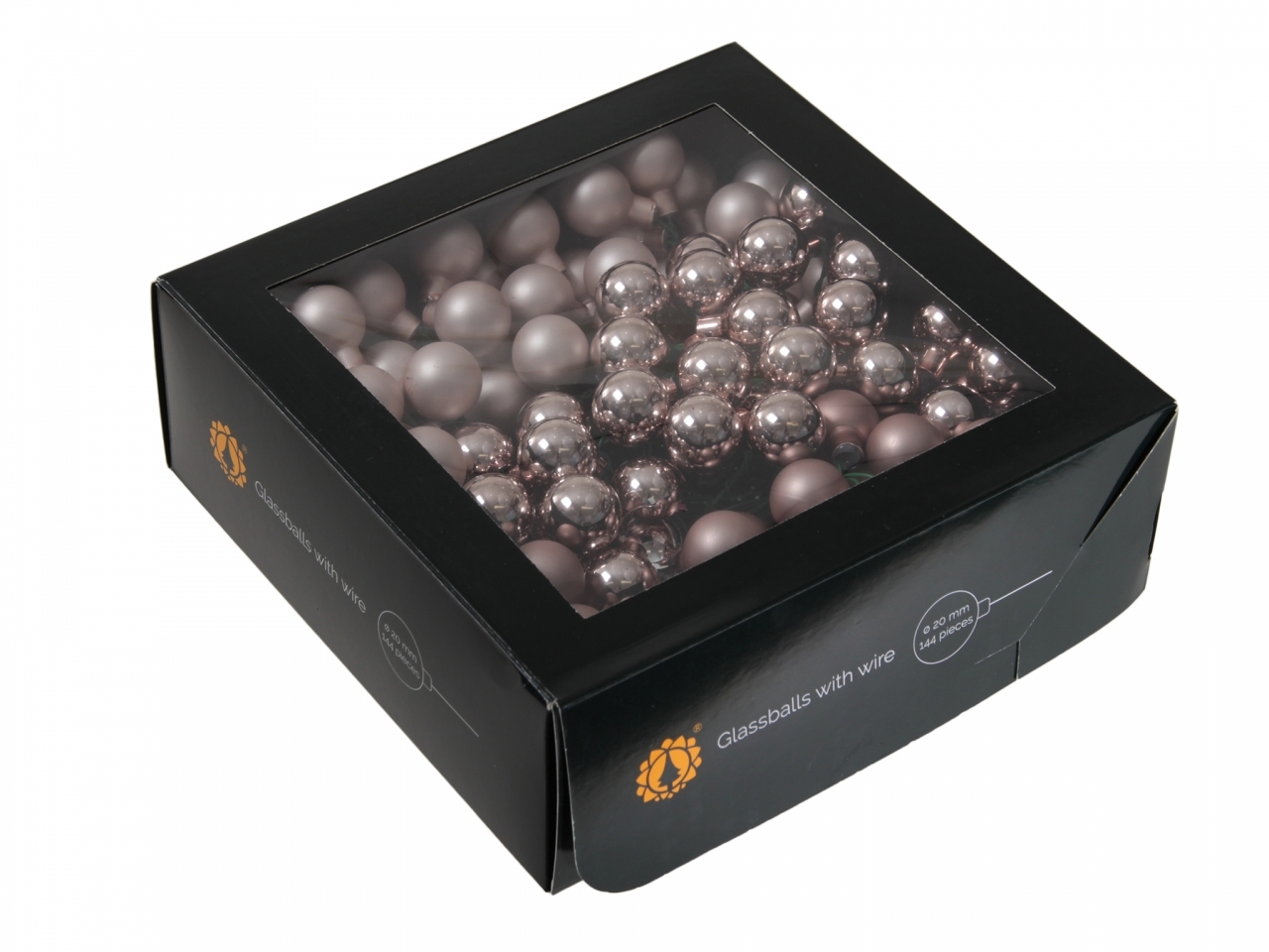 Sada 144 ks skleněných baněk s drátkem v barvě růžové kouřové. V sadě jsou lesklé a matné baňky.Materiál: sklo, drátekRozměr:průměr 2 cm prečítať celé