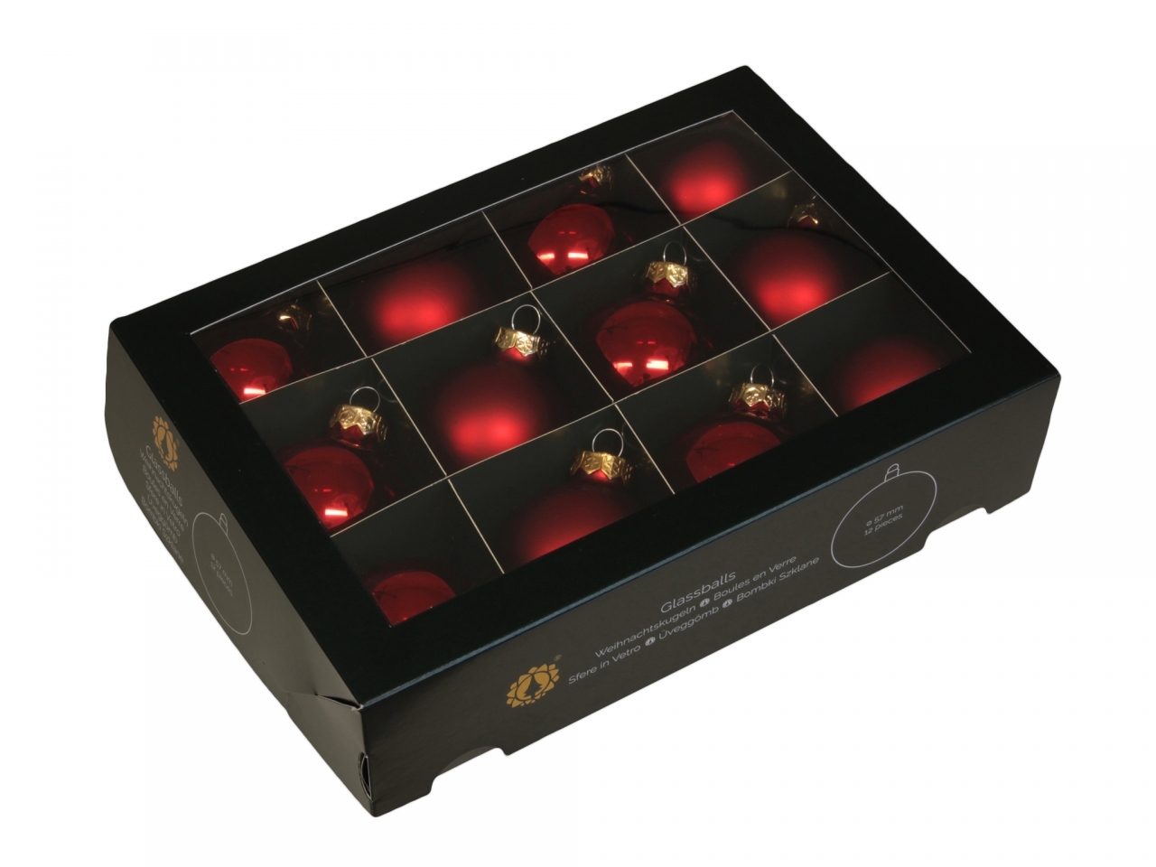Sada 12 ks skleněných baněk v červené barvě. V sadě jsou namíchané lesklé a matné baňky.Materiál: skloRozměr:průměr 5,7 cm prečítať celé