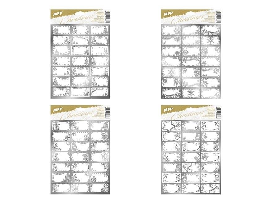 Naklejki na prezenty BN srebrne 20x30cm 21szt MIX